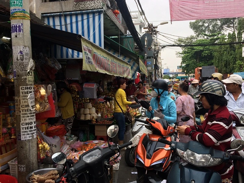 Sáng 8-2 (tức 22 tháng Chạp), tại khu vực chợ Bà Chiểu (quận Bình Thạnh) tấp nập người mua kẻ bán.
