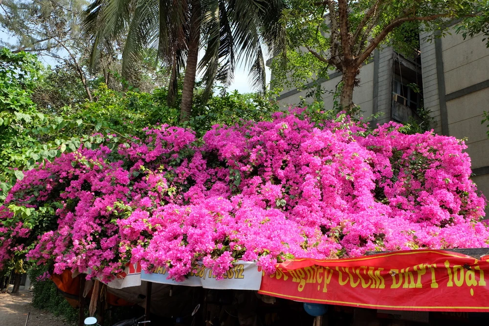 Giàn hoa giấy trước chung cư Thanh Đa. Ảnh VH