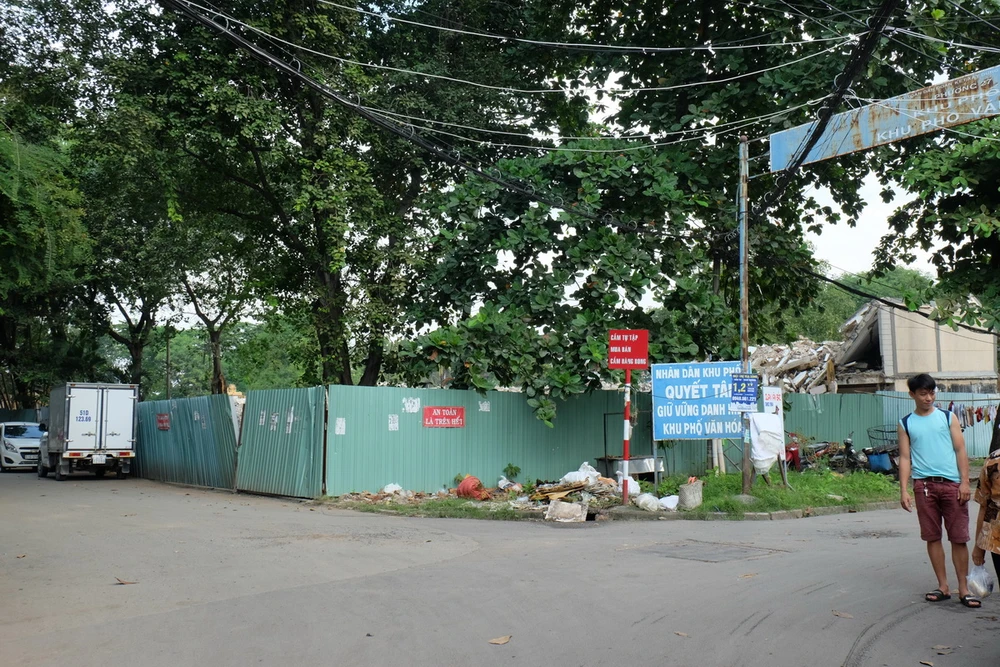 Khuôn viên lô 4, 6 đang được rào lại để tháo dỡ. Ảnh VH