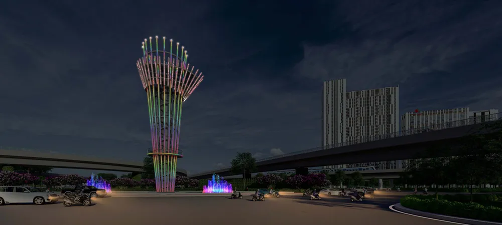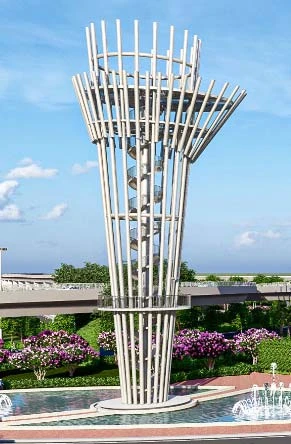 Tháp biểu tượng là điểm nhấn trung tâm đảo elip vòng xoay của dự án với mục đích tăng tính định vị địa điểm, cảm nhận về nơi chốn và khuyến khích gặp gỡ cộng đồng thông qua công viên, không gian đi bộ. Đồng thời là điểm vọng cảnh lý tưởng, điểm nhấn trang trí cảnh quan TP về đêm...