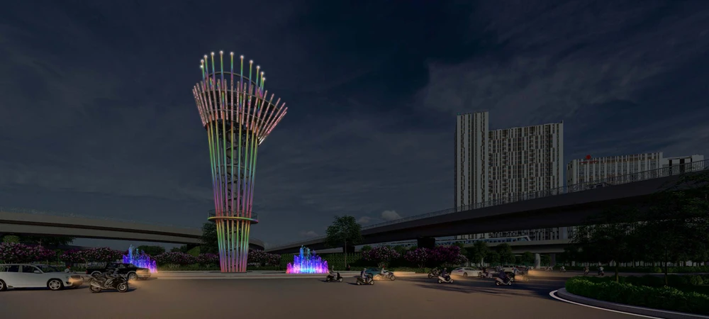 Dự án cũng có các hạng mục kiến trúc khác đi kèm là hồ nước cạn, đài phun nước, chiếu sáng mỹ thuật trụ tháp...