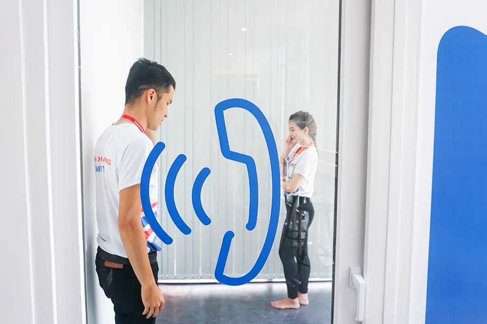 Khu vực cách âm cho người nghe, gọi điện thoại bên trong thư viện.