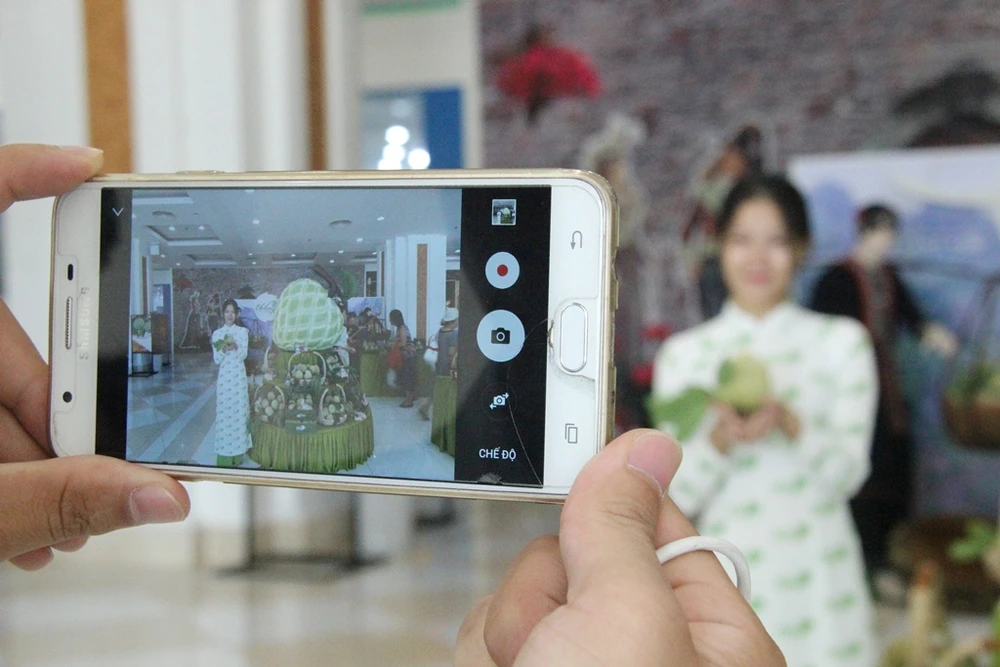 Không chỉ mua, nhiều người cũng rất thích thú trước những gánh na được bày biện đẹp mắt. Một số tranh thủ chụp ảnh để ghi lại khoảnh khắc na quê "đổ bộ" xuống thủ đô.