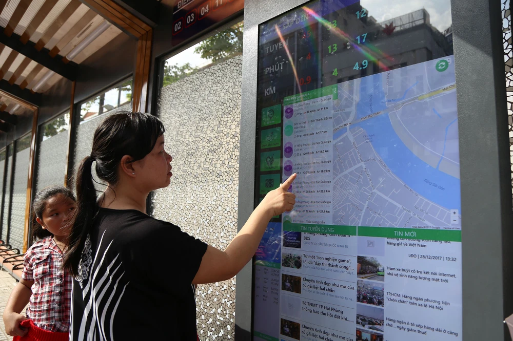 Trạm được lắp đặt 12 bảng thông tin điện tử cập nhật thông tin các tuyến xe buýt, thời gian xe đi đến, vị trí các trạm lân cận...