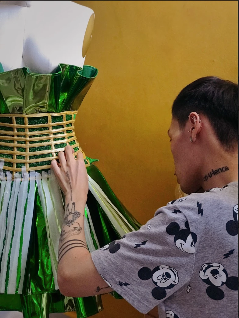 “Trang phục lần này rất thú vị với Khoa bởi vì bánh Tét ăn thì ngon nhưng mà phải làm sao để khán giả xem bộ trang phục này cũng phải cảm thấy ngon mắt thì mới đúng ý đồ. Trang phục đã chỉn chu, phần còn lại Khoa nhờ vào Duyên”- NTK Khoa Lỗ trải lòng.