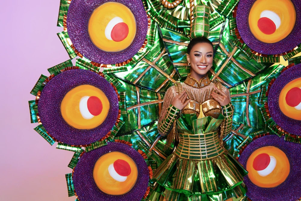 Trang phục dân tộc lấy cảm hứng từ món bánh quê dân dã của người dân đồng bằng sông Cửu Long và cụ thể là Cần Thơ - quê hương của Kim Duyên