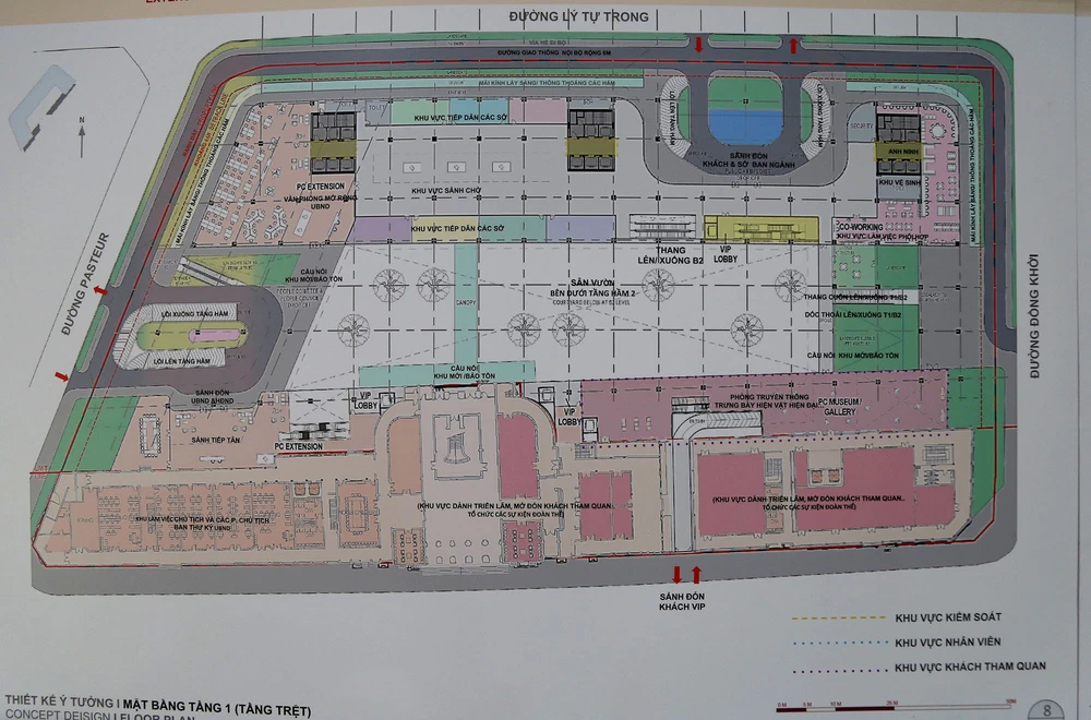 Theo thiết kế, công trình nằm trong khuôn viên rộng hơn 18.000 m2, diện tích xây dựng hơn 14.000 m2, bốn mặt tiền là đường Lê Thánh Tôn, Pasteur, Đồng Khởi và Lý Tự Trọng (quận 1, TP.HCM).