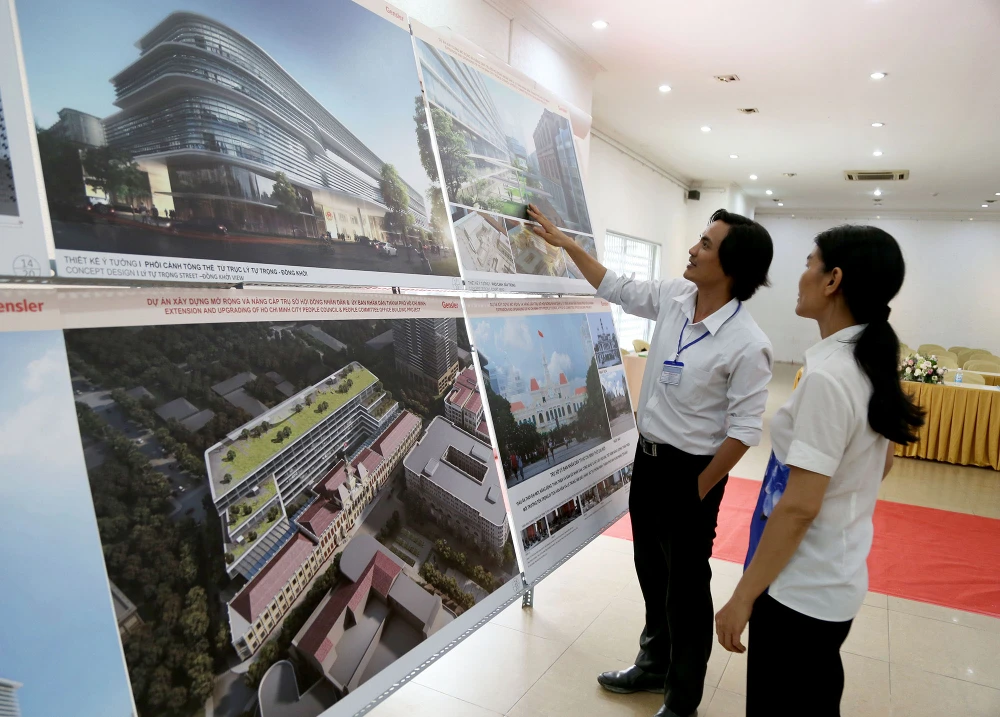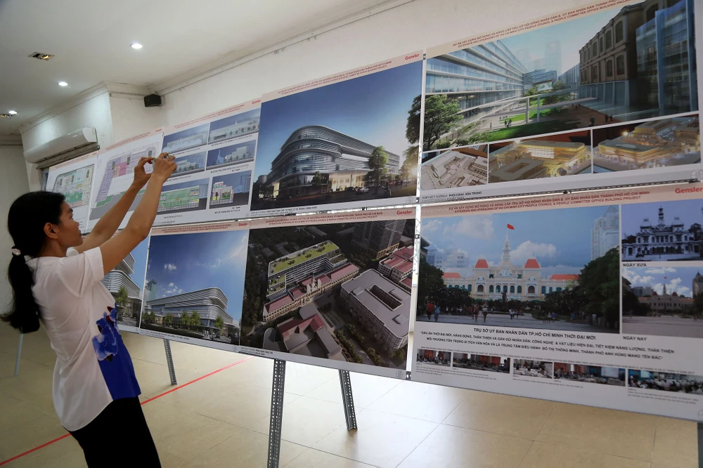 Tại Trung tâm Trưng bày Triển lãm thành phố (92 Lê Thánh Tôn, quận 1, TP.HCM) đang diễn ra triển lãm phương án thiết kế quy hoạch tổng mặt bằng tỉ lệ 1/500 và kiến trúc công trình xây dựng, mở rộng, nâng cấp trụ sở HĐND và UBND TP.HCM, do Sở Quy hoạch - Kiến trúc đưa ra để lấy ý kiến người dân và chuyên gia.