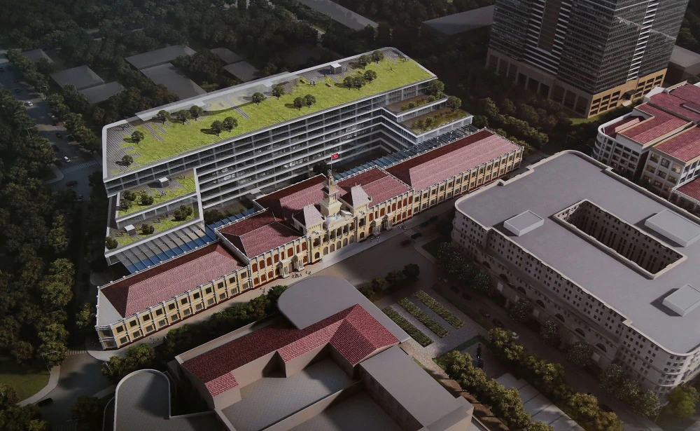 Phối cảnh tổng thể tòa nhà trụ sở UBND TP.HCM sau khi nâng cấp nhìn từ hướng Lý Tự Trọng - Pasteur.
