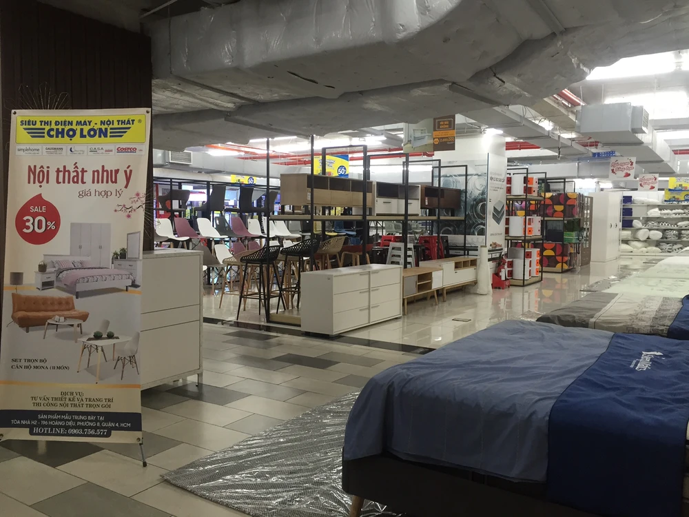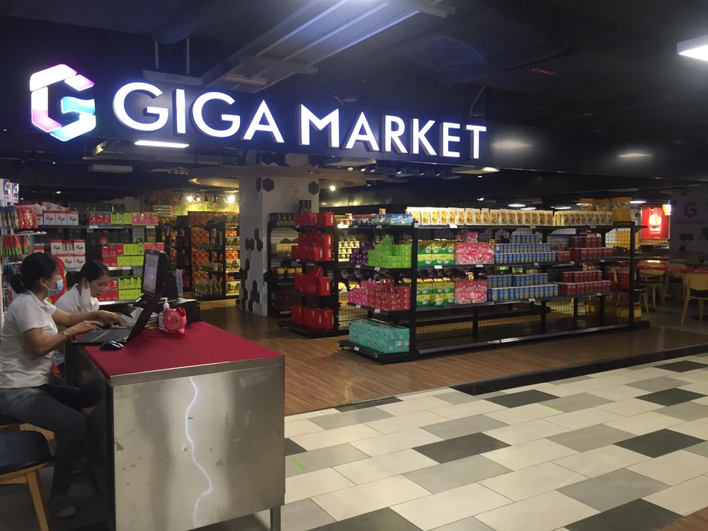 Khu vực siêu thị đã mở cửa nhưng vắng khách ghé đến tham quan mua sắm.