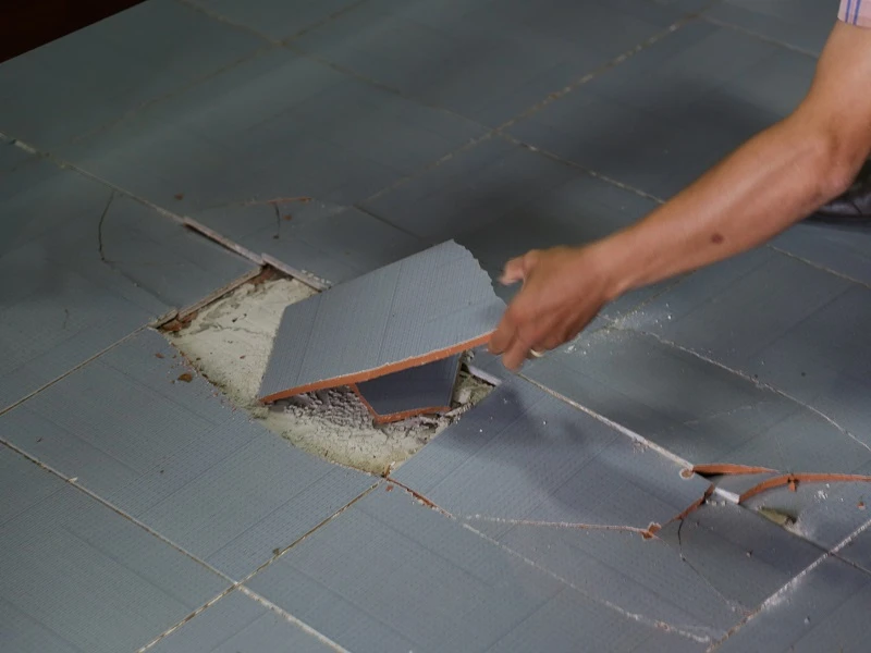 Gạch sàn nhà vỡ vụn và bong tróc...