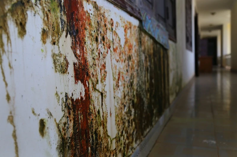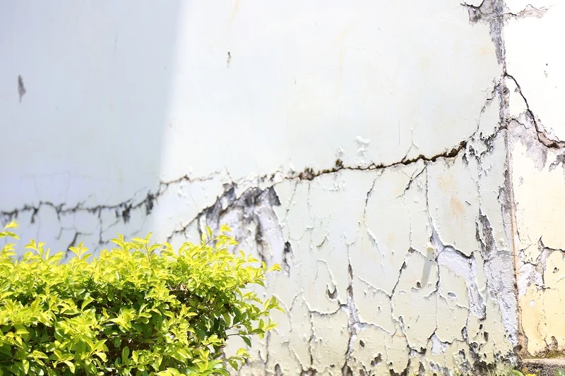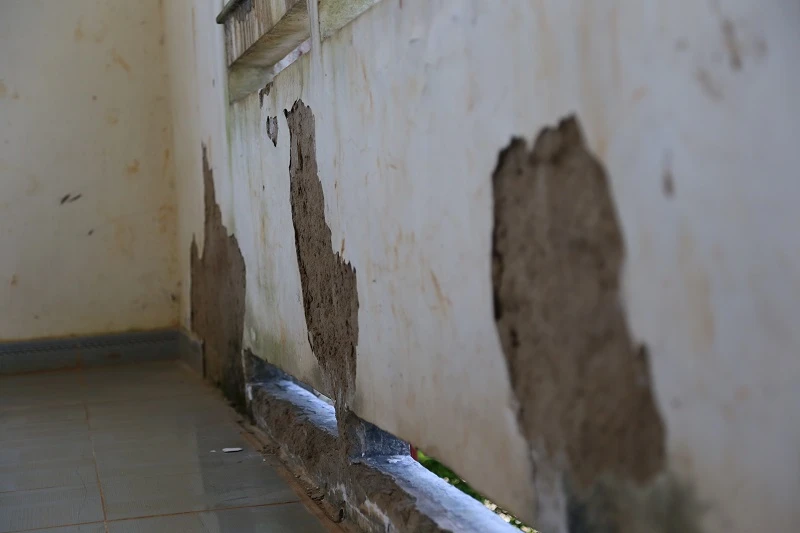 Những mảng bê tông tường bị hỏng, bong tróc.