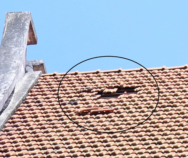 Mái ngoài của công trình có nhiều điểm hư hỏng khiến nhiều người lo ngại khi mưa sẽ bị dột.