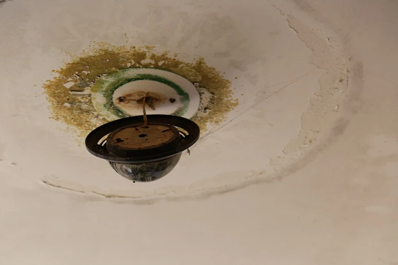 Những tấm lót trần hư hỏng nhưng không được sửa chữa.