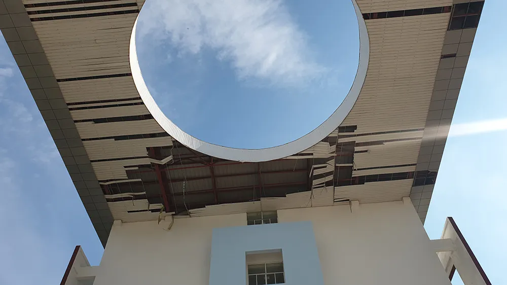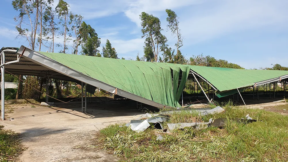 Tại trường Đại học Phạm Văn Đồng, TP. Quảng Ngãi, bão số 9 khiến gần như toàn bộ khu vực giảng đường bị hư hỏng, tốc mái, vỡ kính... Ảnh: Tân Toàn