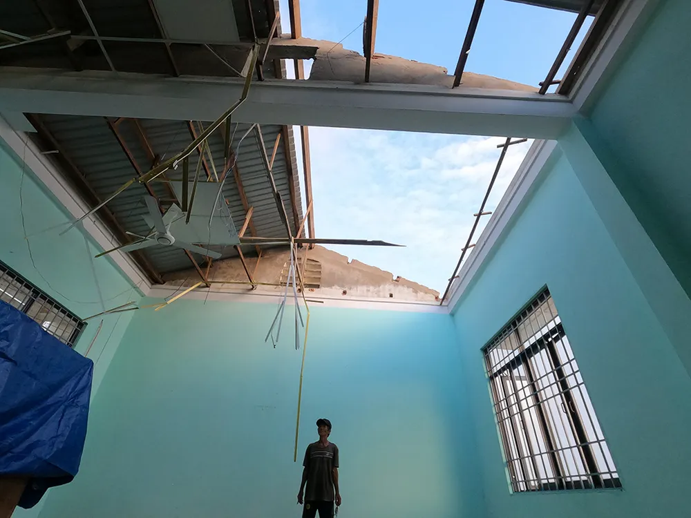 Tuy nhiên, do ảnh hưởng nghiêm trọng của bão công tác khắc phục để đi vào dạy và học còn tốn một thời gian rất dài. Ảnh: Tân Toàn