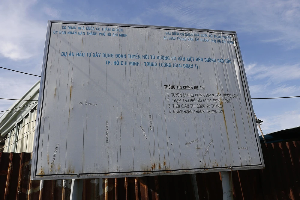 Toàn tuyến dài 2,7 km nhưng chỉ có vài đoạn hình thành kết cấu đường tạm bợ. Phần lớn chiều dài đoạn tuyến còn lại vẫn là nền đất đen, nhiều đoạn qua nhà dân chưa được giải phóng mặt bằng. Hơn 10 hộ dân khu vực đường Cây Bàng, ấp 2, xã Tân Kiên, huyện Bình Chánh vẫn sinh sống trên tuyến đường thuộc dự án.