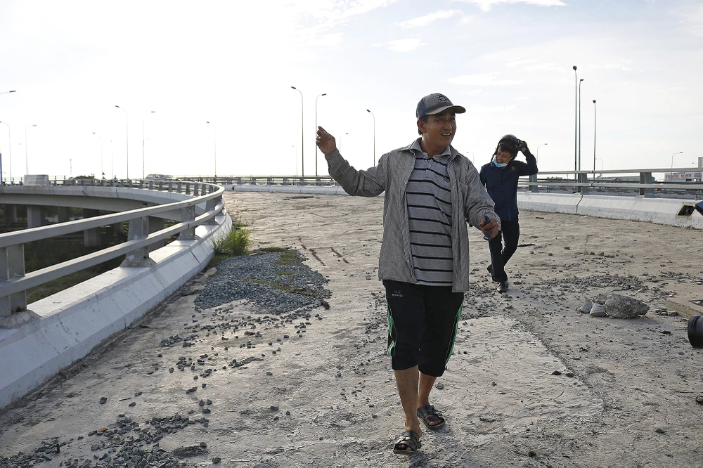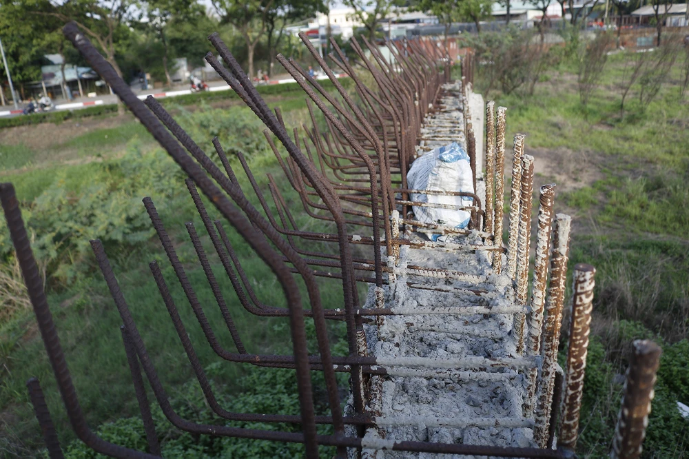 Một nhánh cầu thuộc điểm đầu dự án BOT đường nối Võ Văn Kiệt thi công dang dở, cốt thép hoen rỉ.