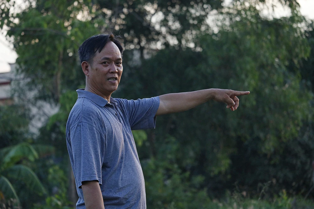 Ông Lương Huy Hùng (xã Tân Kiên, huyện Bình Chánh) đứng trên phần đất đã được giải tỏa trắng khoảng 1000 m2 của mình để làm trạm thu phí nhưng hiện nay vẫn trống trơn.