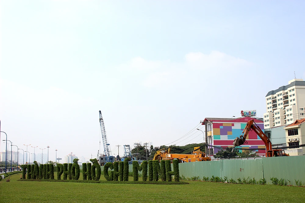Tuyến Metro số 1 Bến Thành - Suối Tiên đang thu hút sự quan tâm của người dân TP.HCM, đây được xem là dự án giao thông quan trọng nhất trong nhiều năm qua tại TP. Trong ảnh: Một màu xanh được tạo nên chạy dọc hai bên tuyến đường sắt metro số 1