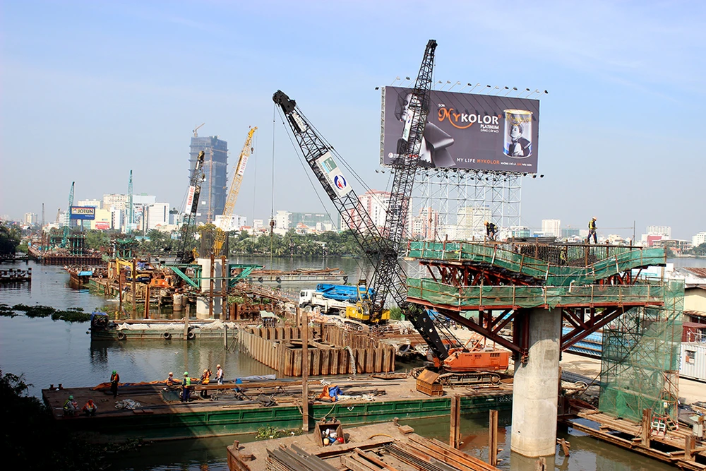 Thi công phần đường trên cao của tuyến đường sắt Bến Thành – Suối Tiên