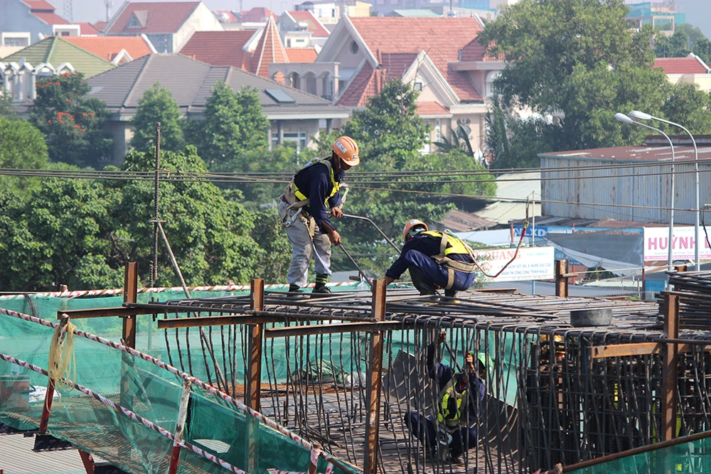 \Công trường đoạn từ cầu Sài Gòn về hướng Thủ Đức cũng rất khẩn trương, các vòng cốt thép đang được hàn, kiểm tra kỹ