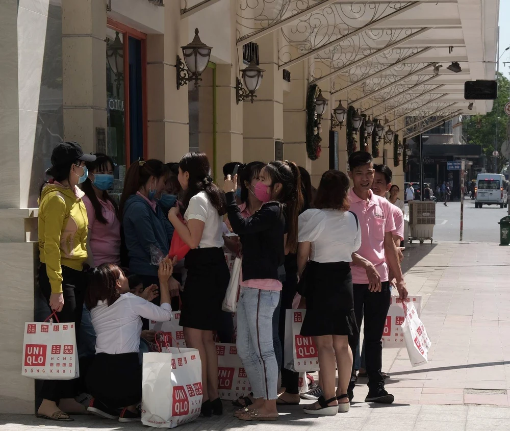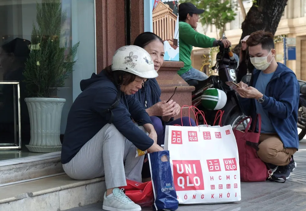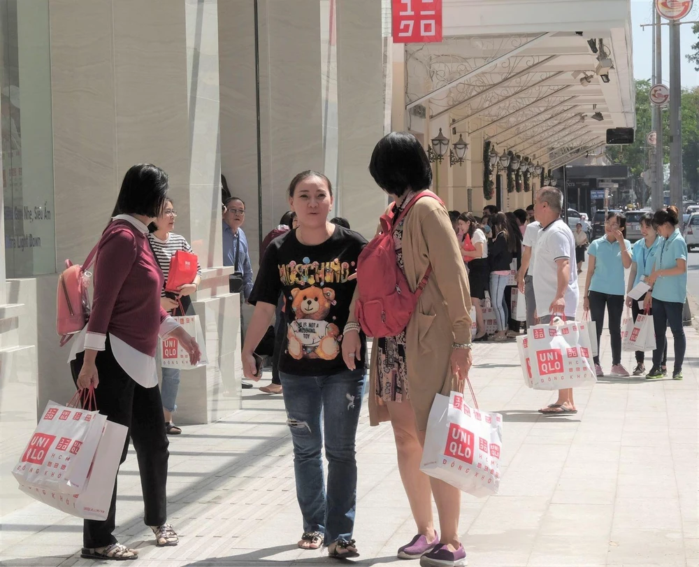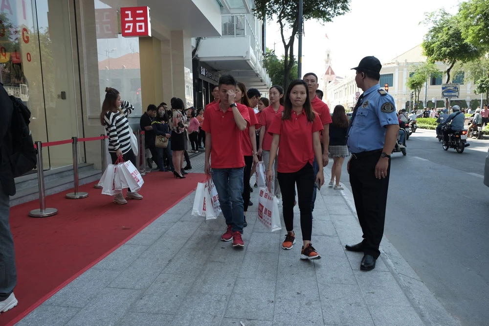 Tại phía cổng ra của Uniqlo đường Đồng Khởi người mua sắm xách rất nhiều túi đồ.