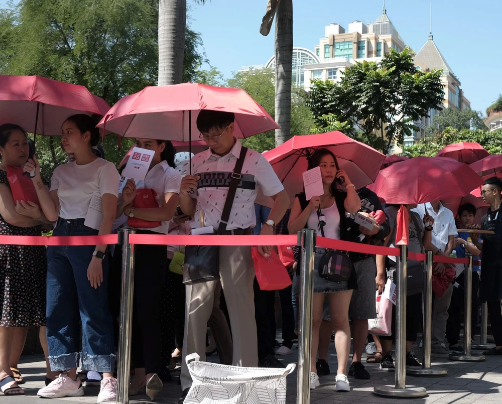 Hàng ngàn người đứng xếp hàng dài trong ngày đầu khai trương cửa hàng Uniqlo Đồng Khởi.