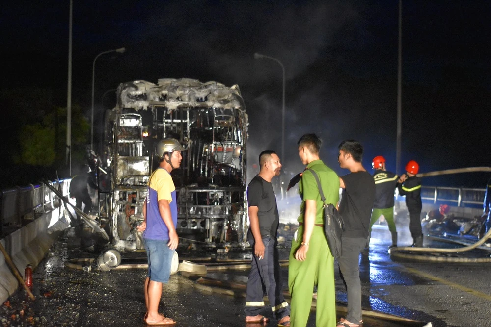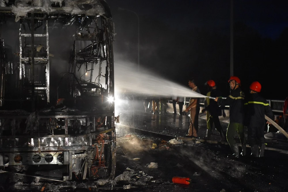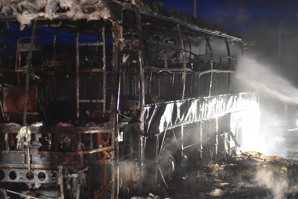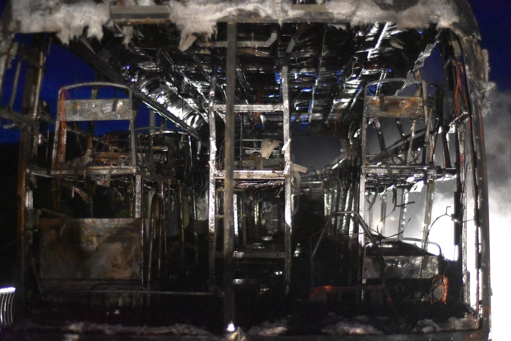 Xe khách bị cháy trơ khung sắt.