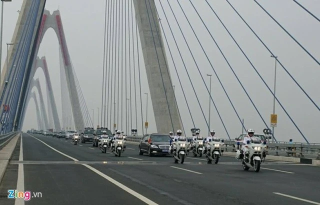 Đoàn hộ tống ông Tập Cận Bình từ sân bay Nội Bài về Hà Nội. (Ảnh: Zing)