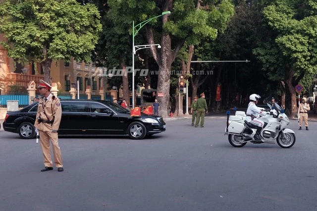 Đi hộ tống cho chiếc xe limousine Mercedes-Benz S600 Pullman Guard là dàn xe gồm xe chuyên dụng của cảnh sát dẫn đoàn, xe cứu thương, xe chuyên dụng của lực lượng cảnh sát cơ động và nhiều xe hộ tống khác.