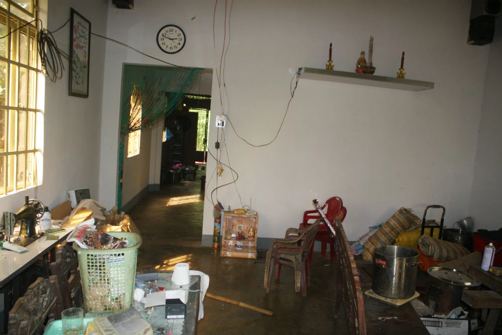 Hàng sát bên nhà Nam cũng có khoảng cách gần 200 m. Bên trong nhà của Nam khá ngổn ngang với nhiều máy móc mô tơ, nhiều bình thủy tinh, lọ. Bên ngoài khu phía đằng sau nhà, chuồng heo bỏ hoang cũng chứa nhiều thùng nhựa.