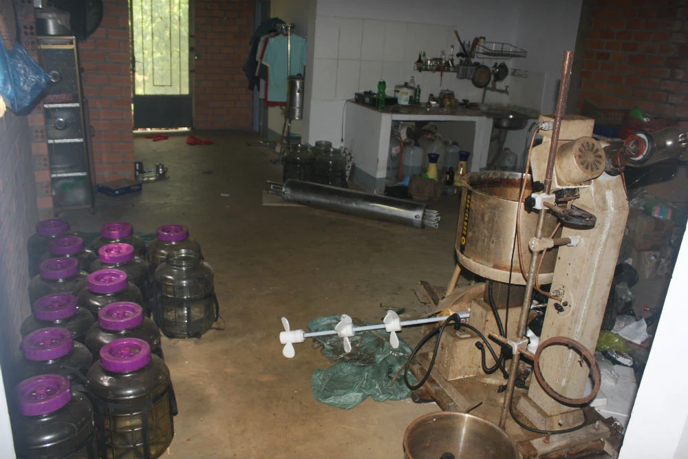 Hình ảnh tại xưởng sản xuất một mẻ 200 kg ma túy tại nhà Nam ở Đồng Nai: