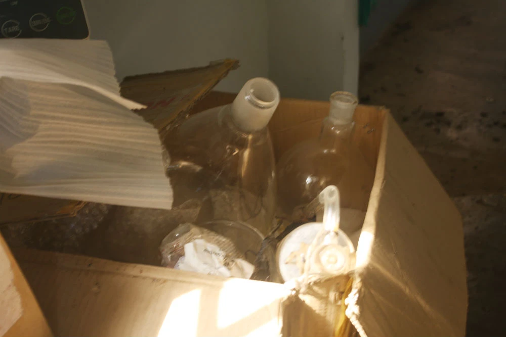 Bên trong còn rất nhiều bình thủy tinh, máy móc.