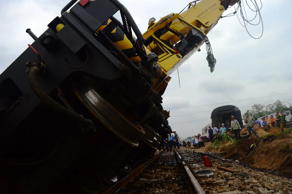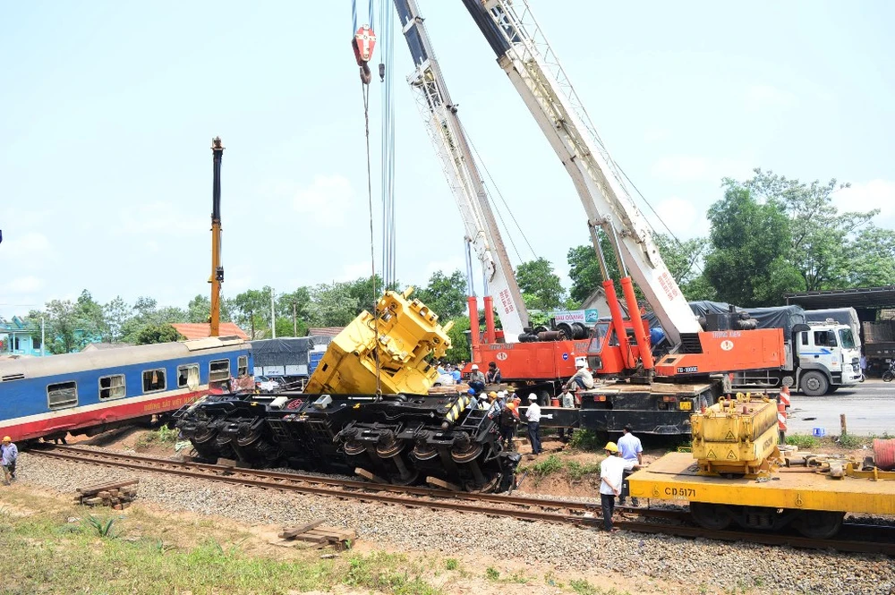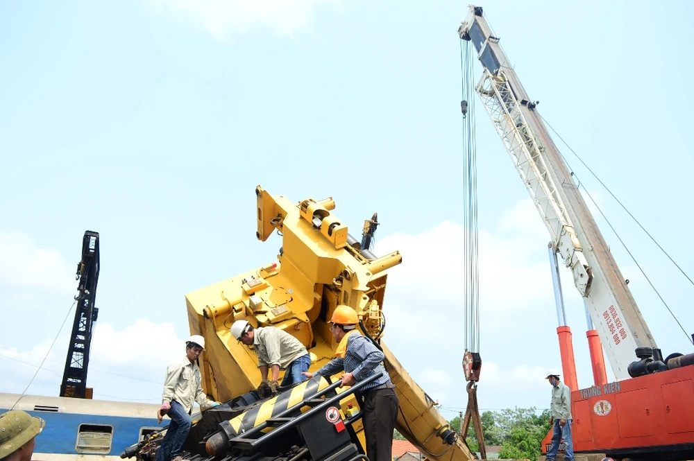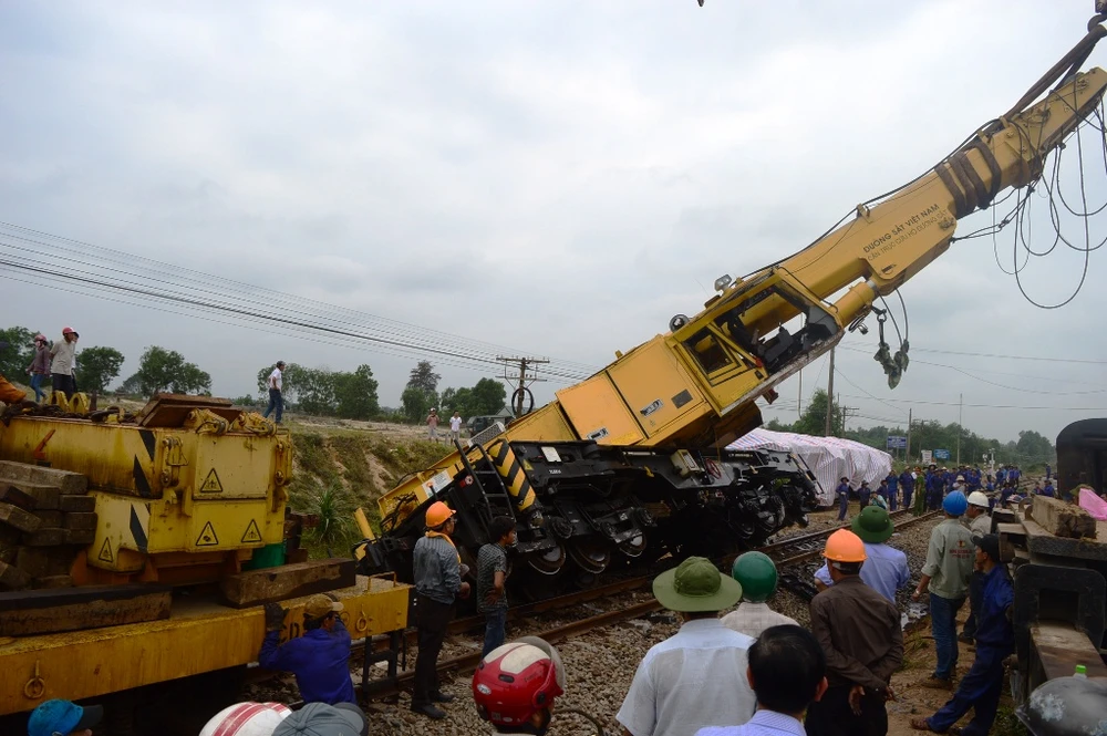 Ngay sau khi cần cẩu bị đổ, một cần cẩu đường sắt khác từ TP. Đồng Hới, tỉnh Quảng Bình cũng được huy động để phục vụ cho công tác thông tuyến.