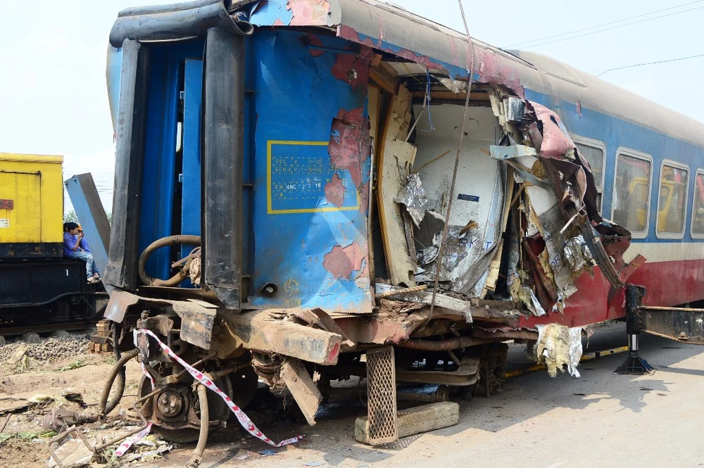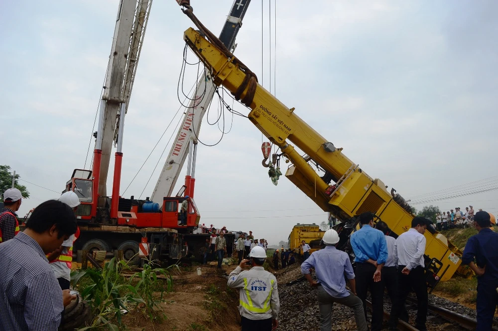 Tại hiện trường, hàng trăm công nhân viên đường sắt cùng với 4 chiếc cần cẩu vẫn làm việc cật lực để nhằm thông tuyến trong thời gian sớm nhất.