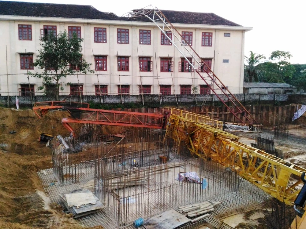 Gần 17 giờ chiều 14-11, bất ngờ cần cẩu đổ sập xuống móng công trình và ập lên mái ngói trên tầng ba của Trường THPT Lê Viết Thuật. Cần cẩu đổ ập hỏng mái trường và đổ xuống sân trường khiến em Trần Văn H. (học lớp 10A7) tử vong tại chỗ.