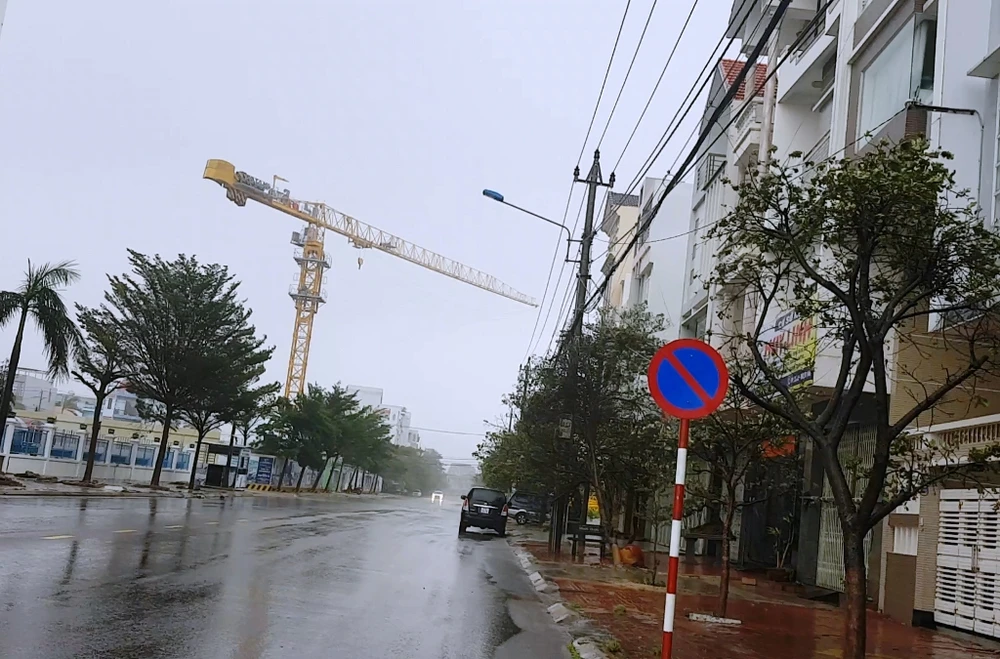 Người dân chạy tránh bão thót tim vì tháp cẩu cao hàng chục mét quay vòng tròn theo gió ngay giao lộ Lê Đức Thọ - Lưu Hữu Phước - Đặng Văn Ngữ ở TP Quy Nhơn.