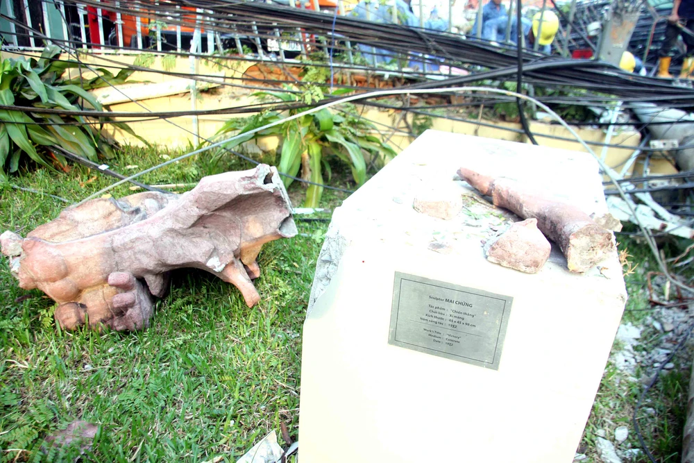 Trao đổi Báo pháp luật TP.HCM bà Mã Thanh Cao - Giám đốc bảo tàng Mỹ Thuật TP.HCM cho biết, "khoảng 4 giờ 15 cùng ngày, bảo vệ chuyên trách làm nhiệm trực ca tại đây phát hiện sự việc và may mắn không có ai thương vong. Tường rào bằng sắt có giá trị lịch sử và bức tượng điêu khắc có tên "Chiến thắng" ra đời năm 1982 đã bị vỡ vụn, hư hỏng".