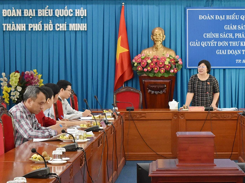 Theo bà Văn Thị Bạch Tuyết, Phó Trưởng đoàn chuyên trách Đoàn ĐBQH TP.HCM, thời gian qua đoàn nhận được rất nhiều đơn thư của người dân gửi đến. Trong quá trình theo dõi kết quả giải quyết đơn thư khiếu nại của người dân, đoàn nhận thấy có nhiều vụ việc kéo dài, giải quyết chậm hoặc nhiều nội dung phản ánh liên quan đến thái độ tiếp dân của cán bộ, công chức.