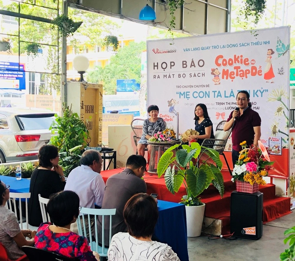 Các diễn giả tọa đàm về cách nuôi dạy trẻ tại buổi ra mắt sách .