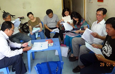 TPL Trịnh Văn Tốt, Văn phòng TPL quận Thủ Đức (ngoài cùng bên trái), đang ghi nhận cuộc họp tại gia đình một khách hàng. Ảnh: T.TÙNG