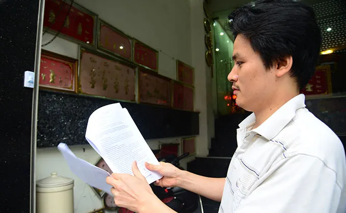 Đơn khiếu nại của ông Kiên nêu: “Theo quyết định xử phạt của UBND TP, căn cứ để ra quyết định là biên bản vi phạm hành chính số 26 do Công an Q.Bình Thạnh lập ngày 19-5-2014. Tuy nhiên tôi không hề được Công an Q.Bình Thạnh cung cấp biên bản này để tôi ký, sau khi lập xong cũng không gửi cho tôi theo quy định của Luật xử lý vi phạm hành chính”. Ông Kiên còn khiếu nại nội dung mình không phải là nhân viên của tiệm vàng Hoàng Mai như quyết định của UBND TP nêu, vì ông không có hợp đồng lao động hay thỏa thuận làm việc với Công ty TNHH một thành viên xuất nhập khẩu vàng Hoàng Mai. Vào thời điểm 13g ngày 24-4, khi Công an Q.Bình Thạnh vào khám xét, ông Kiên là người trông nhà giùm, tiệm vàng không hoạt động kinh doanh. “Vì sao cho rằng tôi vi phạm vào ngày 24-4, nhưng tới ngày 19-5 Công an Q.Bình Thạnh mới lập biên bản vi phạm hành chính về hành vi của tôi, lại không cho tôi biết về biên bản này?” - ông Kiên nói.