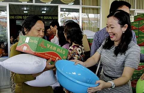 Hội Chữ thập đỏ TP.HCM cùng các mạnh thường quân tổ chức đến thăm và tặng quà cho người nghèo trên địa bàn quận Bình Tân năm 2016. Ảnh: Thế Anh
