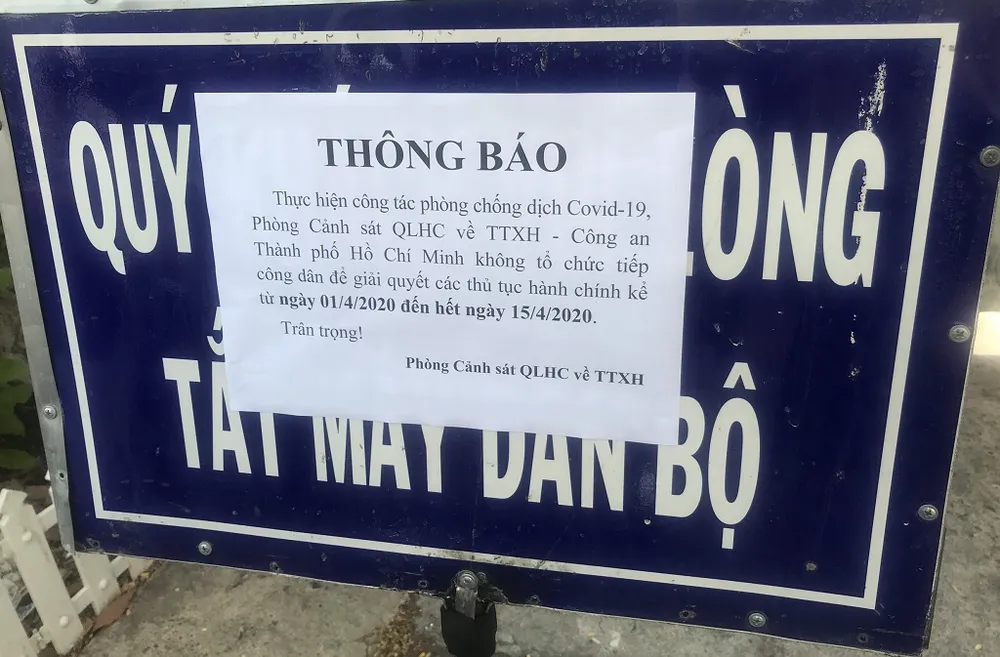 Một lãnh đạo Phòng PC06 cũng thông tin việc tạm ngưng giải quyết thủ tục cho người dân là tuân theo Chỉ thị 16 của Thủ tướng, chỉ đạo của Bộ Công an và Ban giám đốc Công an TP.HCM.