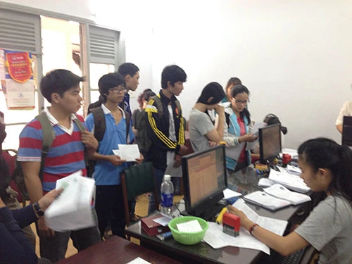 Cần kề ngày thi vẫn còn nhiều thí sinh tự do điều chỉnh thông tin sai sót trên giấy báo thi tại Cơ quan đại diện Bộ GD-ĐT tại TP.HCM. Ảnh: P.ĐIỀN