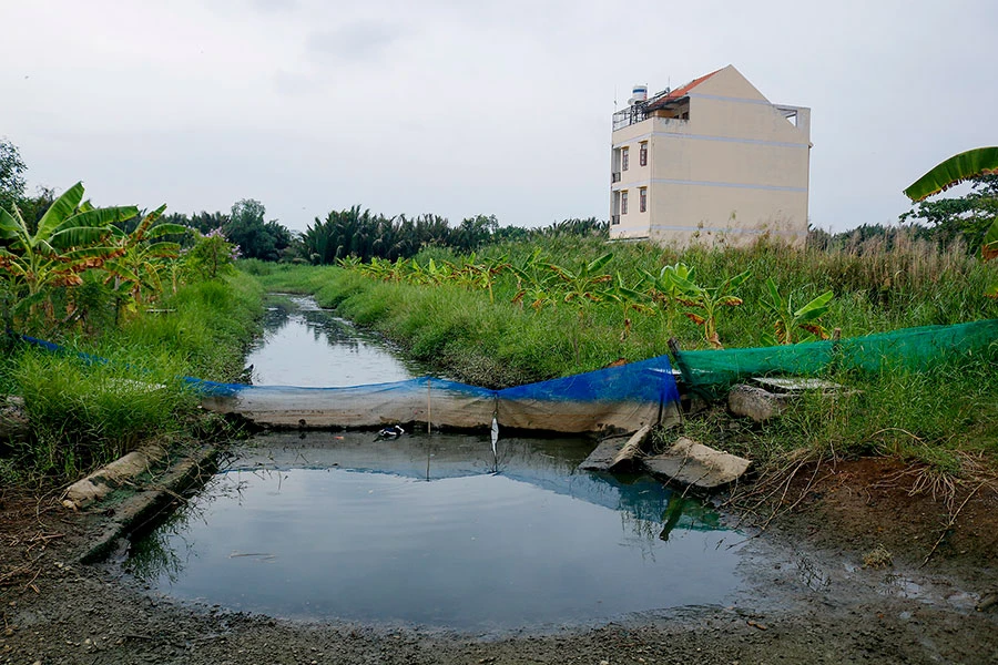 Con đường nội bộ của dự án khu dân cư lô 13A trong khu đô thị mới Nam TP đã trở thành một ao nước nên người dân tranh thủ nuôi vịt. Ảnh: NGUYỆT NHI