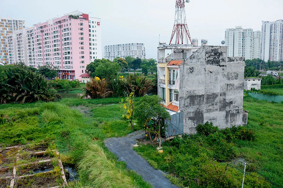 Sau 20 năm triển khai, đến nay dự án khu dân cư lô 13A của Công ty Hồng Quang với hơn 800 sản phẩm biệt thự, nhà phố, chung cư cao cấp mới chỉ có 55 căn nhà được xây dựng. Ảnh: NGUYỆT NHI