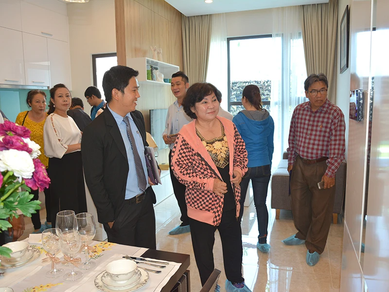 Khách hàng đang tham quan một dự án căn hộ trung cấp. Ảnh: QUANG HUY