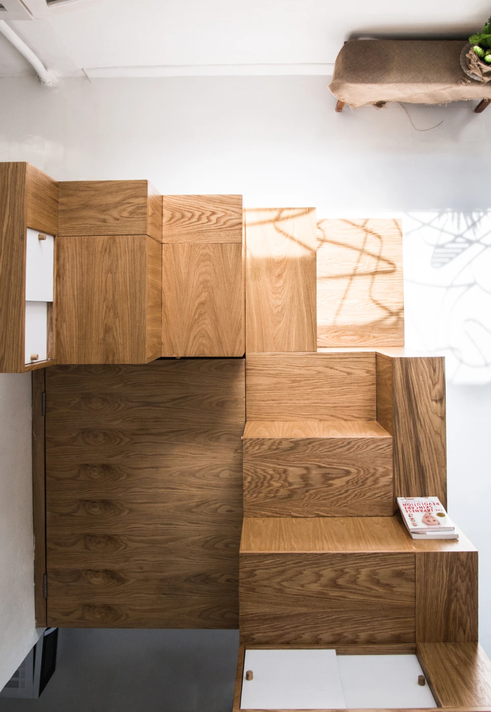 Tuy căn hộ chỉ có diện tích 30 m² nhưng rộng rãi và thoáng như 60 m². Căn hộ được quy hoạch không gian chặt chẽ bằng cách tận dụng cao trần 3,5 m hiện có.